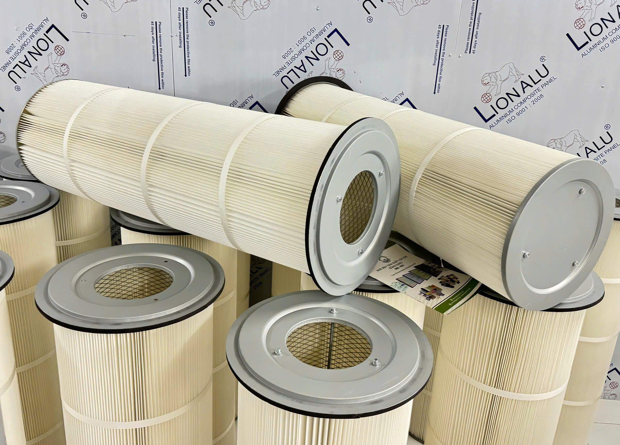 Lõi lọc bụi PE có vành tròn ngấn được sản xuất từ vật liệu polyester bền chắc, thiết kế dạng cartridge xếp nếp với kích thước tham khảo 450 x 390 x 1000 mm. Sản phẩm nổi bật với hiệu suất lọc bụi mịn cao, độ bền lâu dài, dễ lắp đặt và thay thế, phù hợp cho nhiều hệ thống lọc bụi công nghiệp như xi măng, gỗ, kim loại, sơn tĩnh điện và các ngành sản xuất khác.